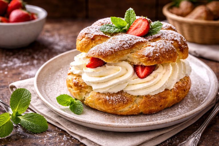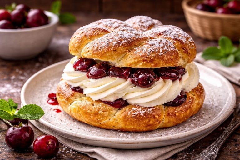 Klassisch und unwiderstehlich: Unsere Windbeutel fertigen wir nach traditionellem Rezept aus feiner Brandmasse – luftig, goldbraun gebacken und herrlich zart. Gefüllt mit frischer Sahne und verfeinert mit köstlichen Kirschen sind sie ein echter Klassiker, der einfach immer schmeckt. Probieren Sie diesen traditionellen Genuss bei uns vor Ort – oder backen Sie ihn doch einmal selbst!